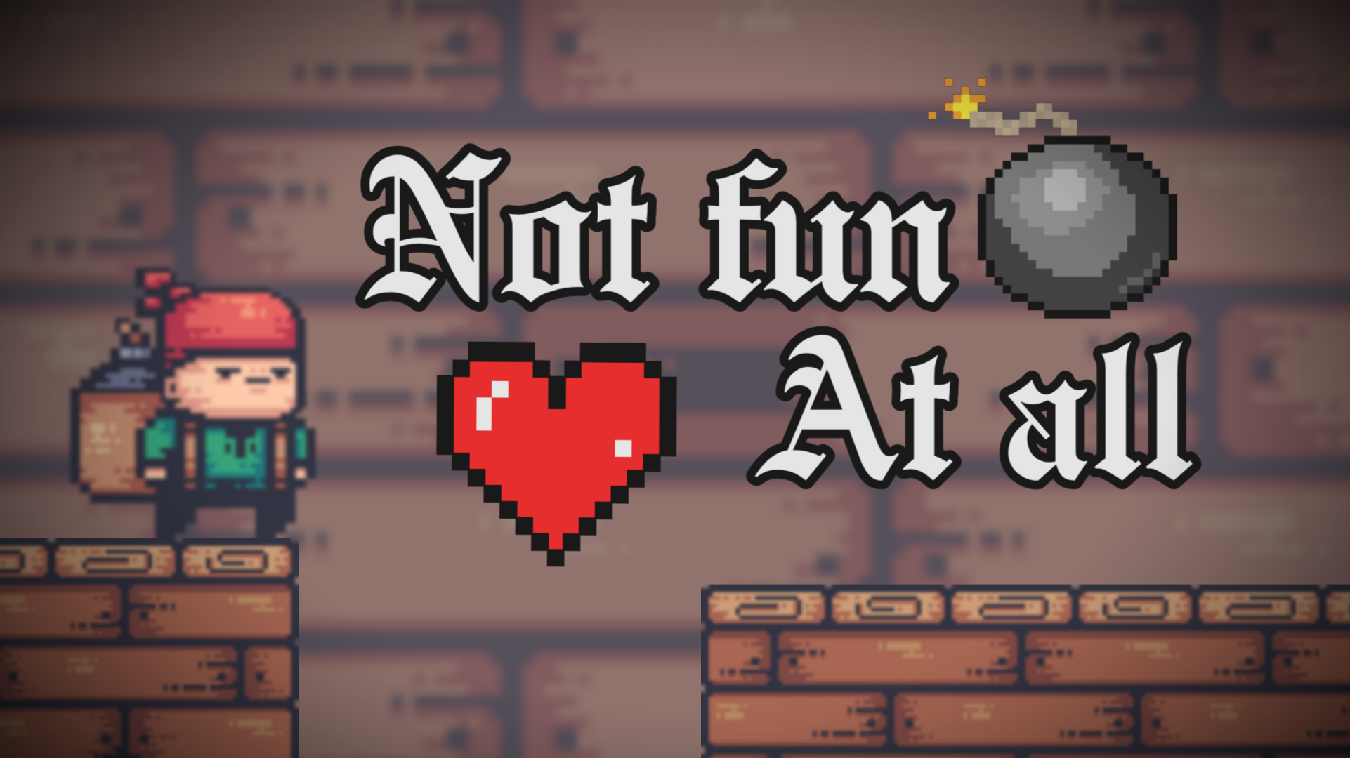 Not Fun At All - это 2D-игра, в которой вам нужно продержаться под градом бомб как можно дольше, у вас также есть жизни, и вам нужно беречь их, чтобы продержаться как можно дольше, в случае потери жизни вы можете их собрать.